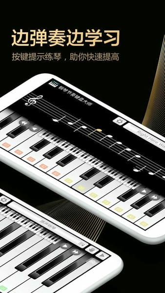 智能钢琴模拟器乐器,内置真实的钢琴音色,它能把你的手机变为一架微型智能钢琴,帮您学钢琴,钢琴练习,了解钢琴谱,认识钢琴教学,熟悉钢琴键盘、钢琴节拍,组建自己的库乐队、酷乐队。它有着真实的钢琴键盘界面,专业的钢琴师一定能发挥钢琴吧的魔力进行钢琴演奏;不懂钢琴乐理知识也能有超真实的完美钢琴体验!