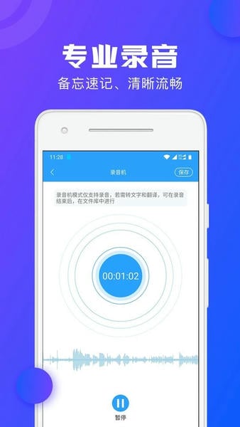 软件具备专业的音频转写处理技术,轻松的还原真实录音场景,听写过程简单,音质清晰。实时记录及翻译功能,支持录音,