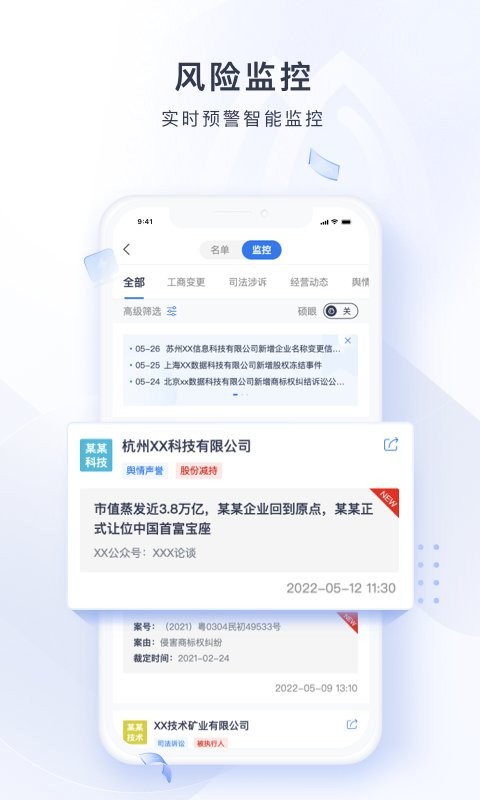 可帮助用户对感兴趣的企业进行监控,方便用户可以实时了解监控企业的最新信息;