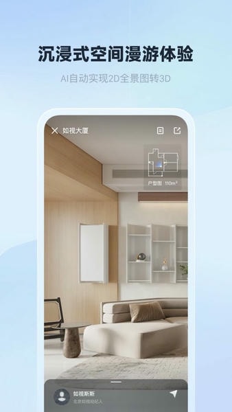 如视 VR 是一款功能丰富、简单易用的三维空间采集App,简单几步即可实现空间的完整复刻,自动生成可供浏览、分享、营销使用的VR链接,获得在VR场景内的沉浸式观览体验。