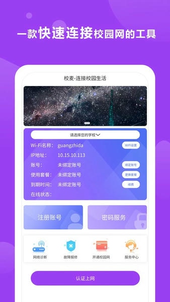 主要提供高速的校园网络生活,能快速连接到校园网。