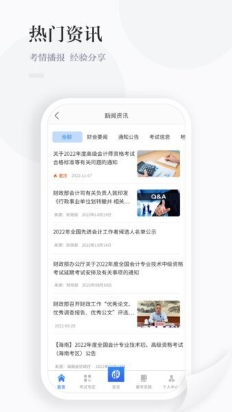 资讯模块主要推送最新的考试信息、考情播报、政策动态以及成功经验分享,帮助用户紧跟考试节奏和行业发展。