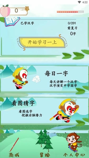 西游识字app每日一练,为幼儿提供多元识字帮助,每日一字,从认知到读写,为孩子带来详细的指导教学内容,以西游记为游戏背景,为孩子带来的早教启蒙识字教育!