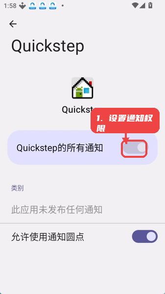 在通知设置模块,Quickstep提供了所有通知的统一开关及通知圆点的独立控制,满足用户对提醒方式的个性化需求。通过简单的滑动按钮切换,用户可以关闭不必要的消息推送,避免信息干扰,也能保证重要通知的即时呈现,尤其适合常用社交或工作相关应用的用户。